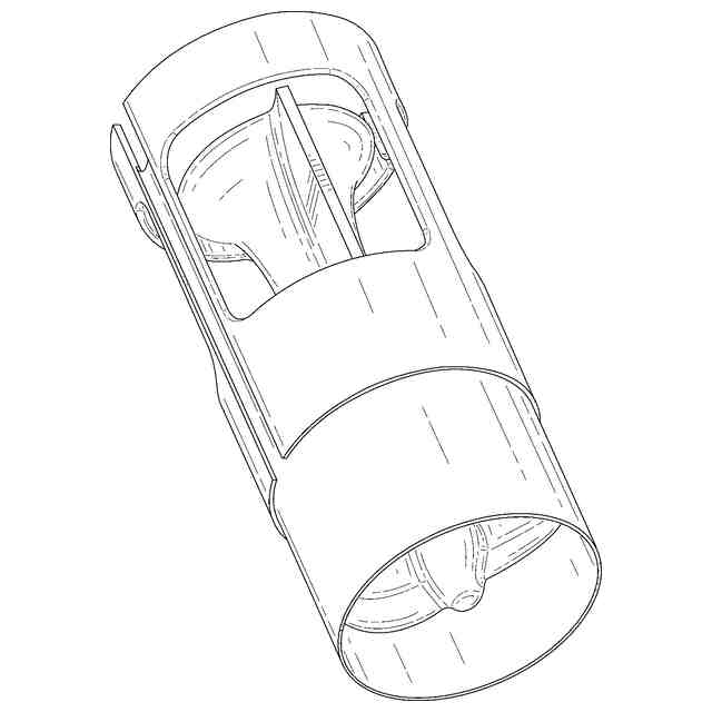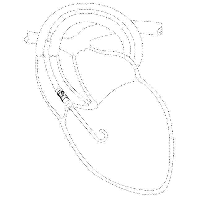 本願意匠に係る物品であるカテーテル血液ポンプ用の小型羽根車及びケージを、正面側から見た斜視図、背面側から見た斜視図、右側面図、左側面図、正面図、背面図、平面図、底面図にそれぞれ示す。また、同物品が(カテーテル血液を送り出すために血液ポンプの一部を形成すると共に)患者の心臓内に配置された状態を参考斜視図に示す。各部の表面部全面に表された細線は、いずれも立体表面の形状を特定するためのものである。