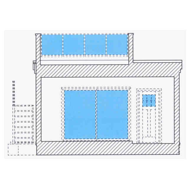 実線で表した部分が、意匠登録を受けようとする部分である。底面図は、重量物のため省略する。 参考正面図、参考背面図、参考左側面図、参考B-B断面図及び参考C-C断面図において、水色部分は透明である。