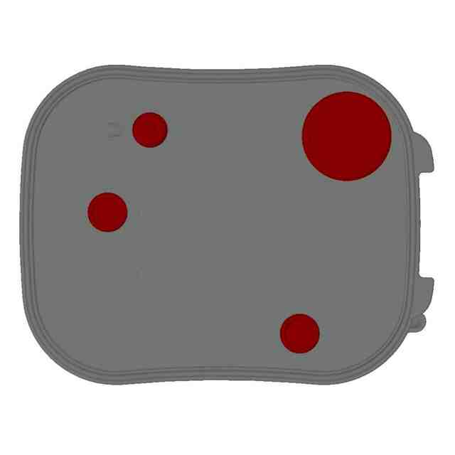 各図の表面部全面に表された濃淡は、立体表面の形状を特定するためのものである。朱色で着色された部分以外の部分が、部分意匠として意匠登録を受けようとする部分である。
