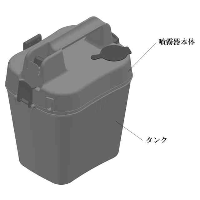本物品は、農薬等を散布するための機器である。本物品は使用に際して液をためるタンクと連結ホース及び噴射カップを接続して用いる。本物品には、内部にバッテリーとポンプが内装されており、ポンプでタンクより噴射カップに農薬等を送るためのものである。