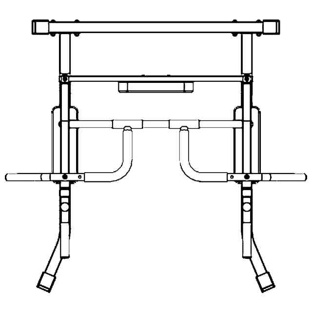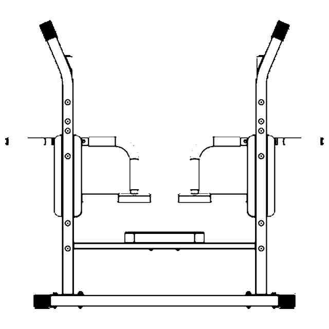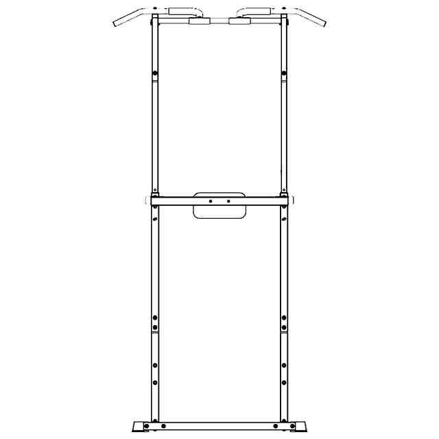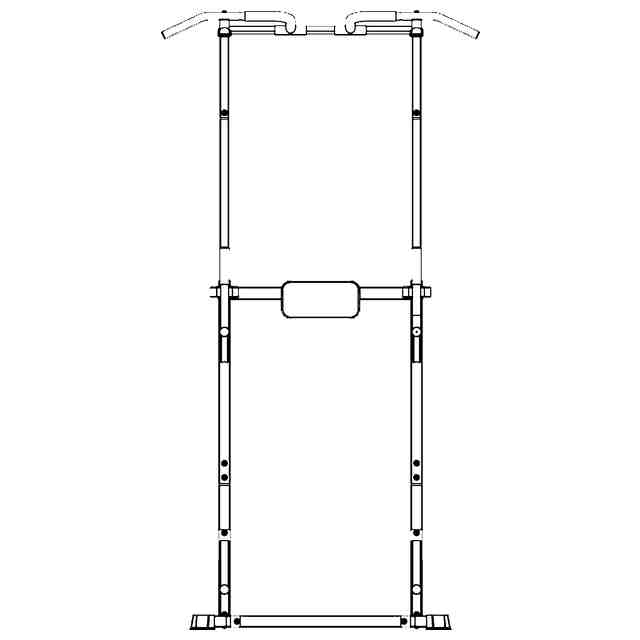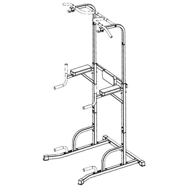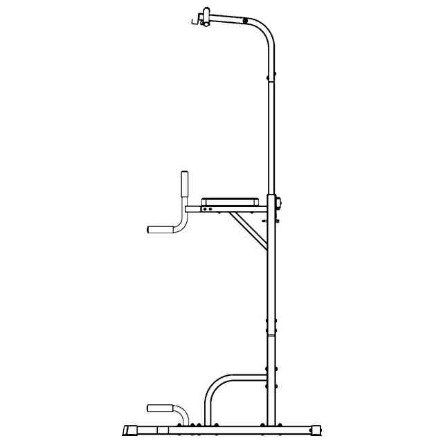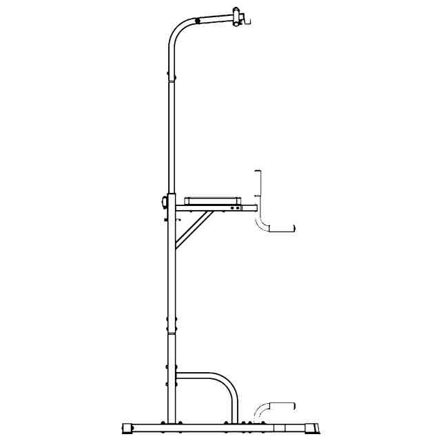 本物品は、ディップスや腕立て伏せ、懸垂やニーレイズなどができる身体鍛錬器具である。上部支柱の先端に設けられた懸垂部には、左右夫々に懸垂バーが備えられると共に、平面視にて上部支柱と各懸垂バーとで左右に夫々四角形状を成すように配設されており、使用者の鍛えたい筋肉によって様々な持ち方に変えて、懸垂やぶら下がりといったトレーニングを行うことができる。さらに懸垂部は左右方向に位置調整可能となっており、これによって使用者は自分の体格にあった手幅でトレーニングを行うことが可能となっている。