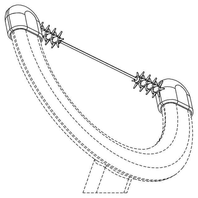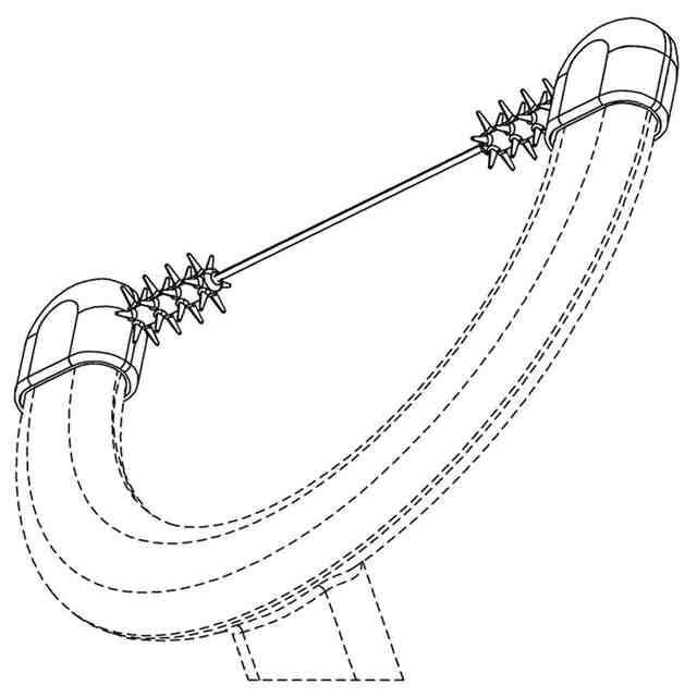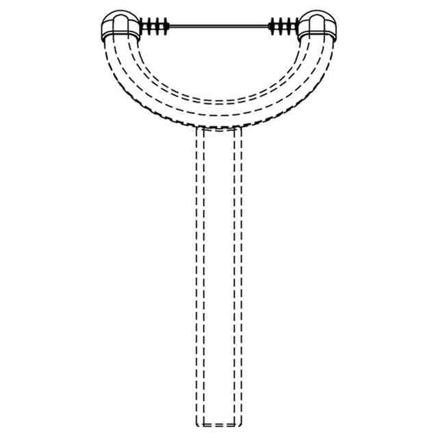 左側面図は、右側面図と対称に表れるため省略する。実線で表された部分が、意匠登録を受けようとする部分である。AB部分拡大図は、右下方斜視図1のAB部分を拡大して示すものであり、CD部分拡大図は、右下方斜視図2のCD部分を拡大して示すものであり、EF部分拡大図は、右上方斜視図1のEF部分を拡大して示すものであり、GH部分拡大図は、右上方斜視図2のGH部分を拡大して示すものである。IJ部分拡大図は、左下方斜視図1のIJ部分を拡大して示すものであり、KL部分拡大図は、左下方斜視図2のKL部分を拡大して示すものであり、MN部分拡大図は、左上方斜視図1のMN部分を拡大して示すものであり、OP部分拡大図は、左上方斜視図2のOP部分を拡大して示すものである。さらに、各図に示す拡大部を示す線、およびA~Pの文字は意匠を構成するものではない。