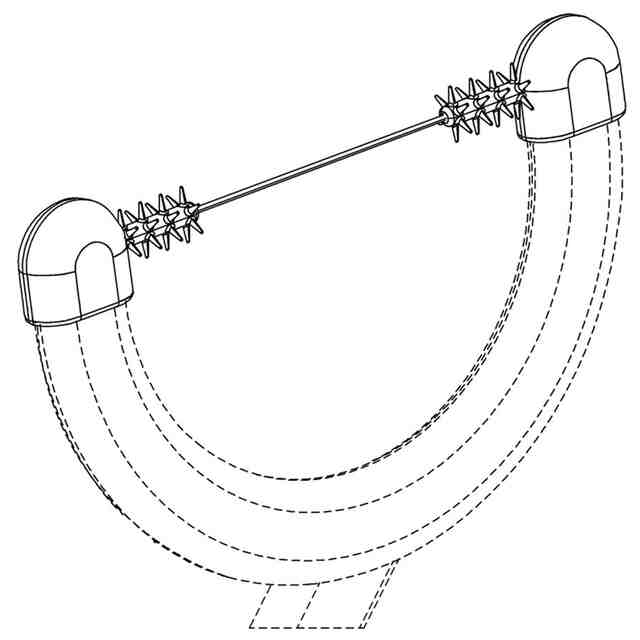 本物品は、使用状態参考図に示すように、本体部に線状のフロス、一対の歯間ブラシ、および一対のキャップが設けられた歯間清掃具である。
