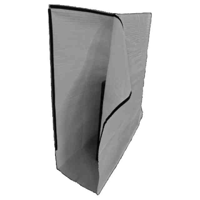 本物品は、柔軟性を有する変形可能な素材で形成されており、正面側が面ファスナーにより開閉できるのに対して、背面側は閉じている。右側面図は左側面図と対象に表れるので省略する。