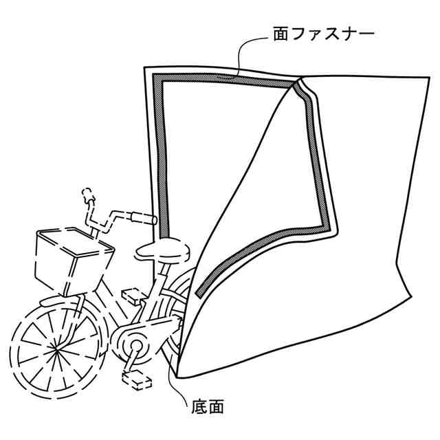 本物品は、自転車の輸送時に周囲が汚れないよう、自転車を覆うための車体カバーである。使用状態を示す参考図1に示すように、本物品の底面を床につけた状態で自転車を侵入させると、自転車全体を覆うことができる。