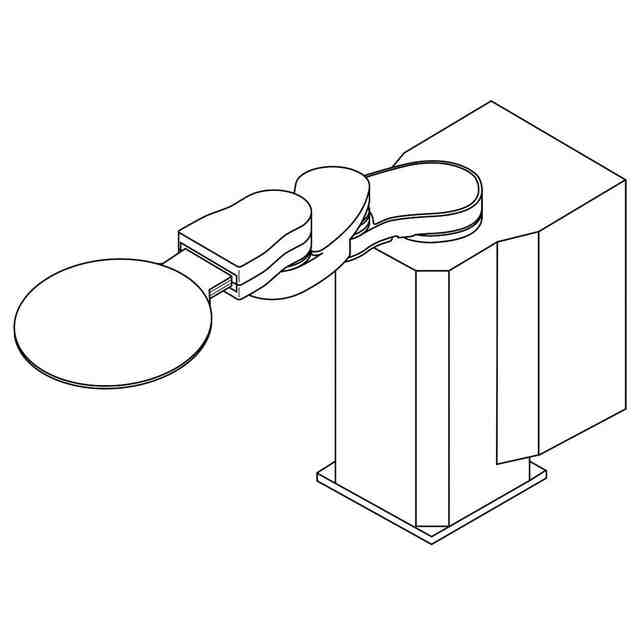 本意匠に係る物品は、産業用ロボットのアームである。参考図に示すように、本物品は、半導体ウエハなどの基板を載せることが可能なハンドを取り付けることができ、このハンドに基板を載せて搬送することができる。本意匠にかかる物品は2つの構成パーツからなり、上方のパーツが下方のパーツに対して回動可能に構成されている。当該2つの構成パーツは、伸長状態において接続部以外で重なり合わず、収納状態において上下方向において重なり合う。