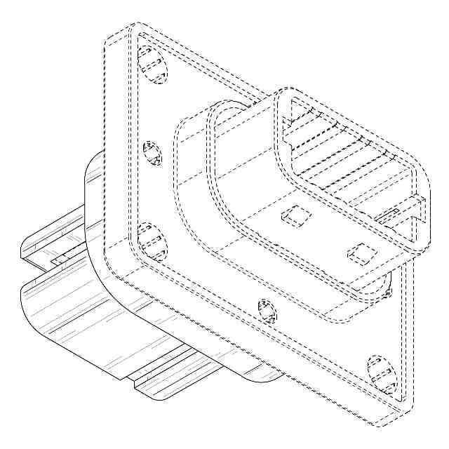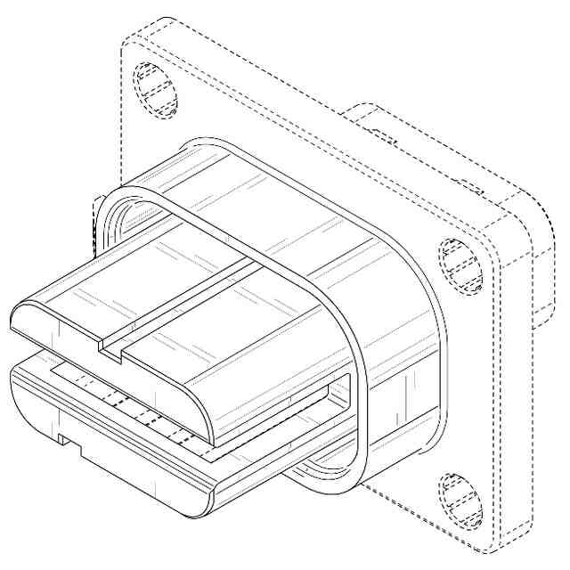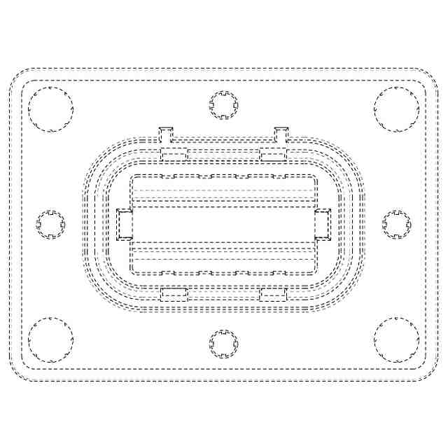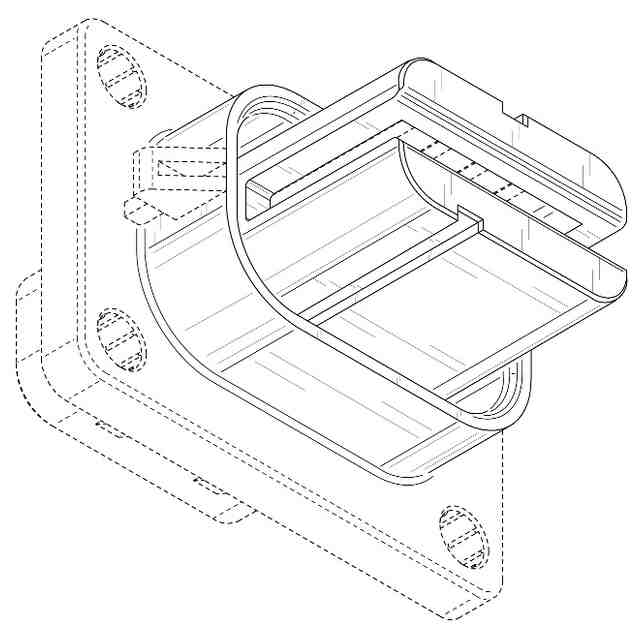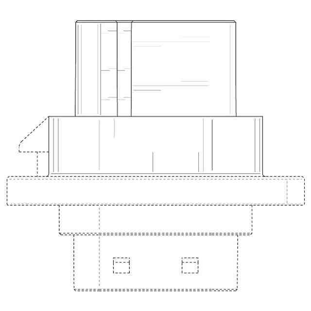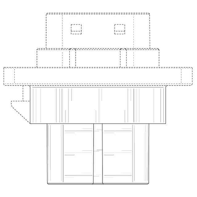 実線で表された部分が、意匠登録を受けようとする部分である。細線は立体表面の形状を表す。