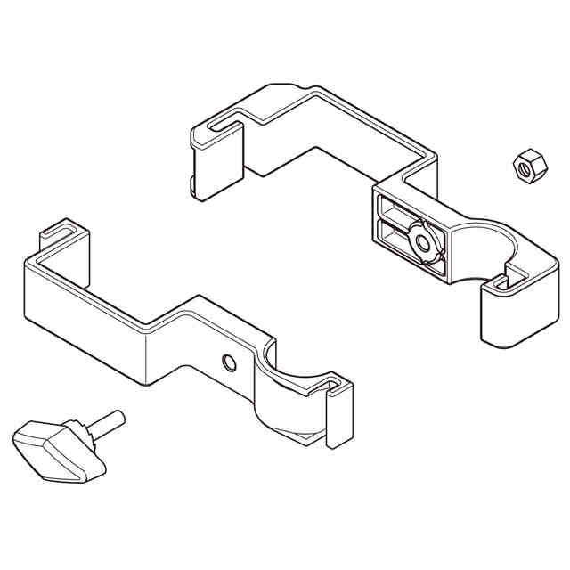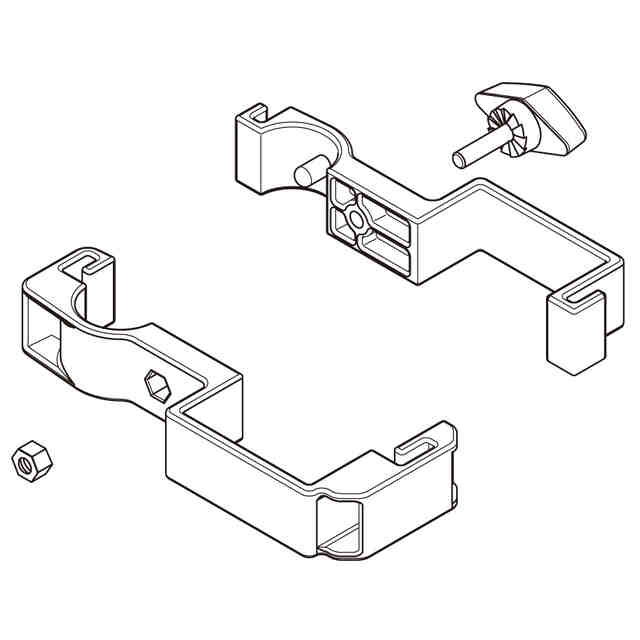 本物品は、家具用接続部品である。本物品は2つの柱材を離れた位置で同時に挟持することで、柱材を接続固定する。本物品は例えば、椅子や机等の家具の脚と、手摺や荷掛け、日除け等の付属具を接続するために用いられる。使用状態を示す参考図では、本物品がベンチと手摺を接続する様子を表す。