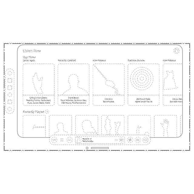 実線で表された部分が、意匠登録を受けようとする部分である。一点鎖線は、意匠登録を受けようとする部分とその他の部分との境界のみを示す線である。参考画像図において青色で着色された部分は、例えば背景写真や壁紙等の画像が背景コンテンツとして表示されることができる部分である。参考画像図において赤色で着色された部分は、写真やメディア情報等のコンテンツが表示される部分である。
