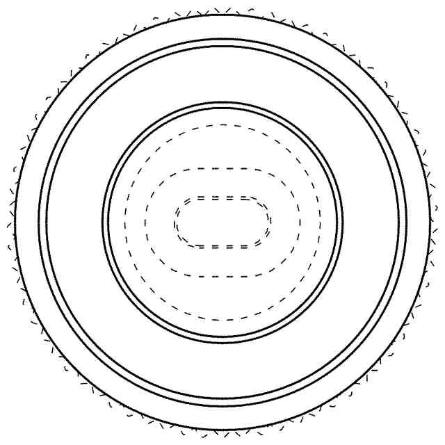 底面図は平面図と同一に表れるため省略する。実線で表した部分が部分意匠として意匠登録を受けようとする部分である。斜視図において表れる途切れた細線は、立体形状を表わす稜線である。