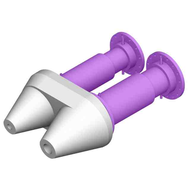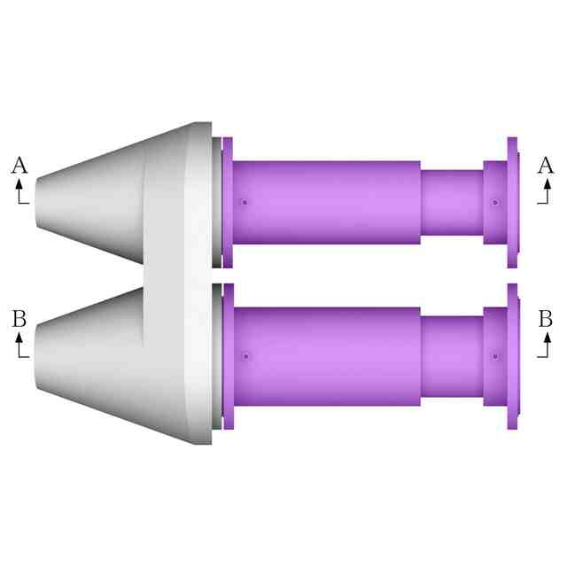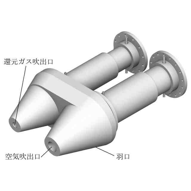 本物品は、高炉内に空気及び還元ガスを送り込むための交換部材であり、「取付状態の断面参考図」のように、本物品の先端の空気吹出口及び還元ガス吹出口が高炉内部に位置するように設置される。