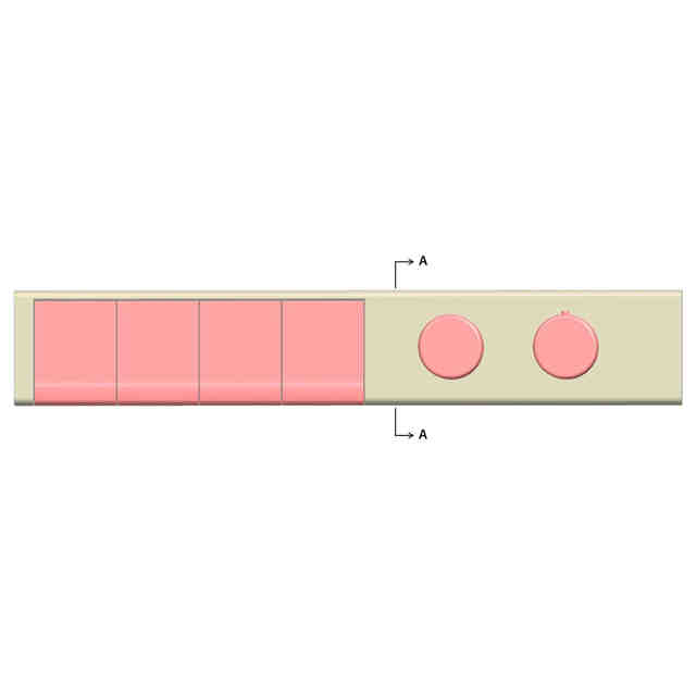 各図面はCGにより作成した図面であり、各図面の表面部全面に表された濃淡は、立体表面の形状を表す濃淡である。各図において、赤色で着色された部分以外の部分が、部分意匠として意匠登録を受けようとする部分である。A-A断面図に表された青色は、断面形状のみを表すものである。