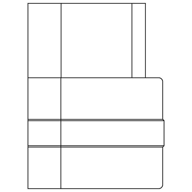背面図は正面図と、左側面図は右側面図とそれぞれ同一にあらわれるため省略する。参考斜視図において、斜線を付した部分は透明である。