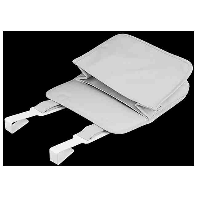 本物品は、フック部を扉に引っ掛けて設置する、ドライヤー等の小物類を収納できる収納具である。フックを外せばタオル掛け等に付けて使用することもできる。フックを伸ばした状態を表す参考図に示す通り、フックに設置する紐の長さを調節することができる。