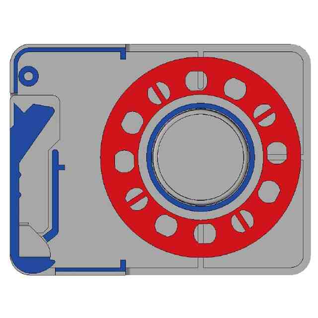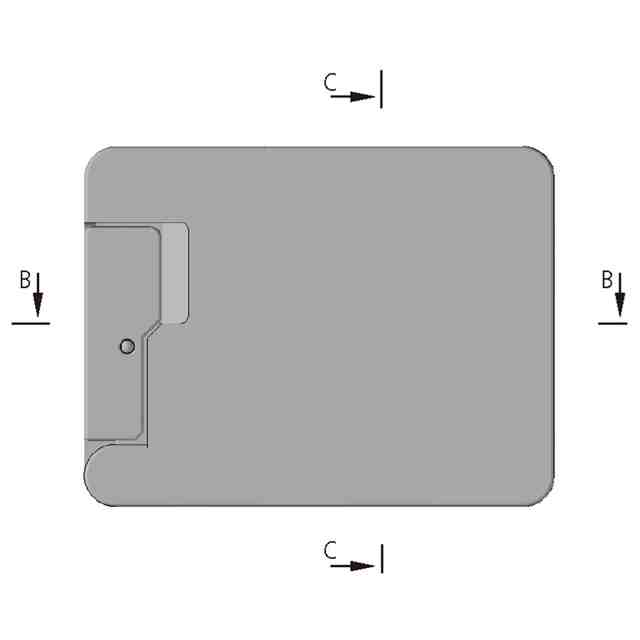 赤色で着色した部分以外の部分が、部分意匠として意匠登録を受けようとする部分である。各図の表面部全面に表された濃淡は、いずれも立体表面の形状を特定するためのものである。断面図に表された青色は、断面形状のみを表すものである。
