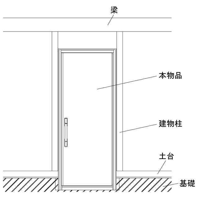 本物品は、使用状態参考図に示すように建物の柱や梁といった構造体に囲まれる空間に設置されるパネルユニットとして用いられる。