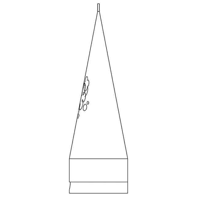 斜視図に表わされた斜めの細線は、立体表面の形状を特定するための線である。