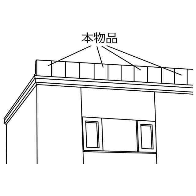 本物品は、「使用状態参考図」に示すように、家屋やビル等の建造物の屋上の周囲に設置し、雪庇の生成を防止するためのものである。