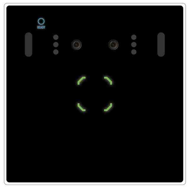 この意匠に係る物品は、建築物や公共交通等の入退場時の認証に用いられるものである。また、正面図は本物品が通電されスタンバイ状態にあることを示すものであり、センサ部が人物を検知又は判定することで、変化状態を示す正面図に示すように認証部が表示されるものである。認証部は、例えば、本物品が顔認証を行う場合に、人物が検知されたときは実施態様の一例を示す参考図1に示すように、該人物が照合され認証されたときは実施態様の一例を示す参考図2に示すように、該人物が照合されず認証されなかったときは実施態様の一例を示す参考図3に示すように、顔の映りが悪かったり複数人を検知したり等で認証できなかったときは実施態様の一例を示す参考図4に示すように変化する。