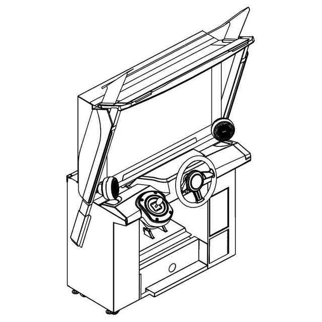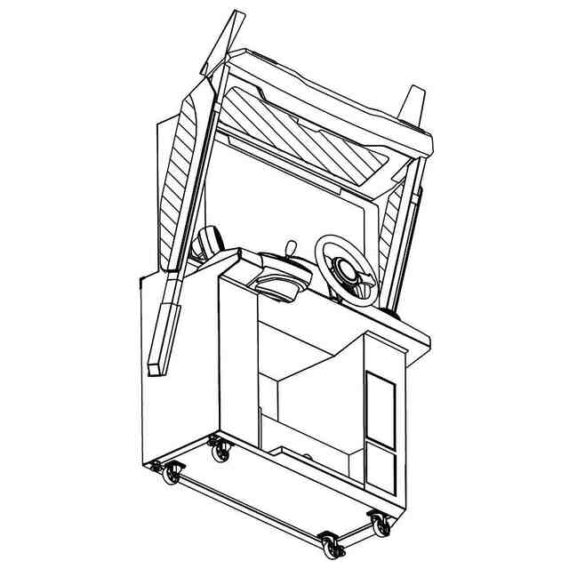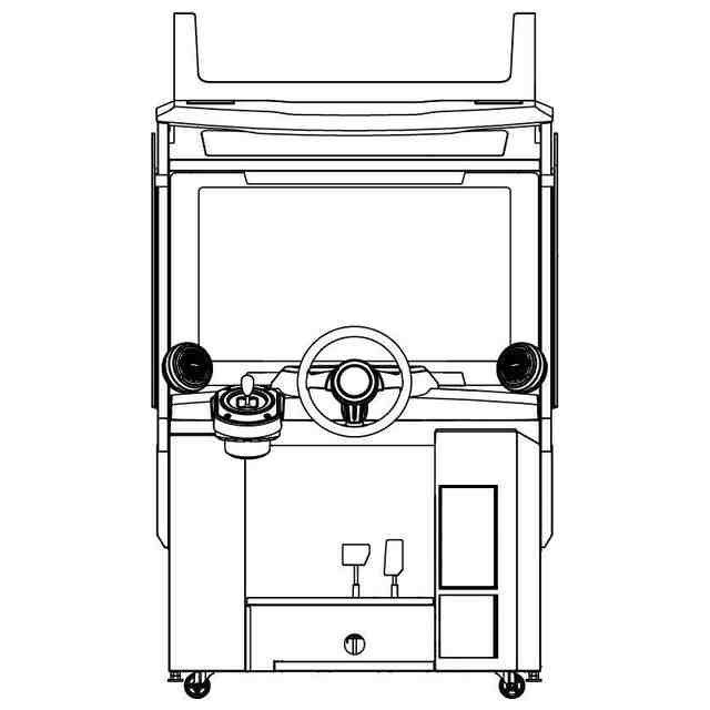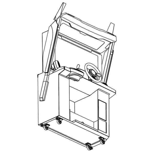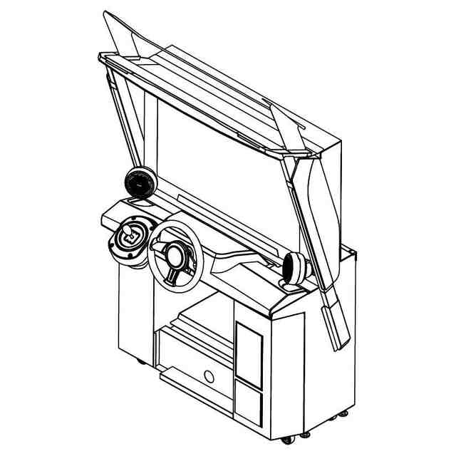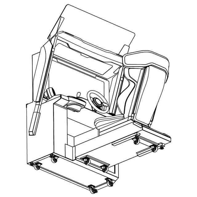 本物品は、ドライブゲームを行うゲーム機用筐体である。この物品は、参考斜視図に示すように、台車、シート、看板が取り付けられて使用される。