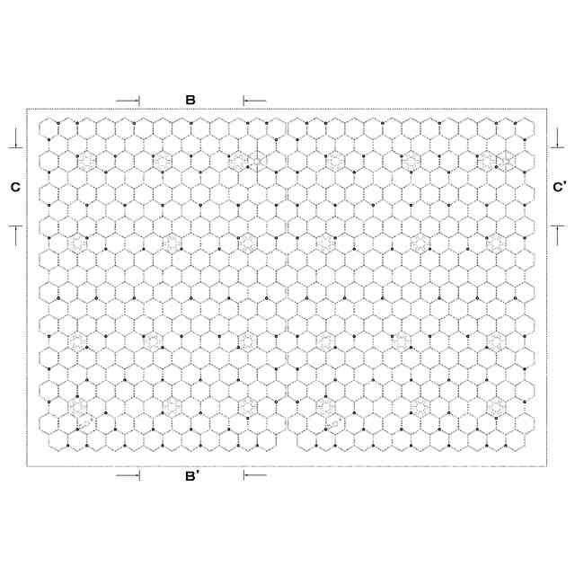 本意匠に係る物品は舗装構造物枠体であり、本物品を敷設した後、本物品のハニカム枠に砂利などを充填し、舗装構造物として用いる。本物品の底面は、不織布などの透光性を有する材料からなるシートで構成される。