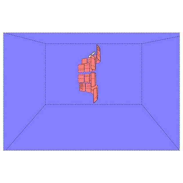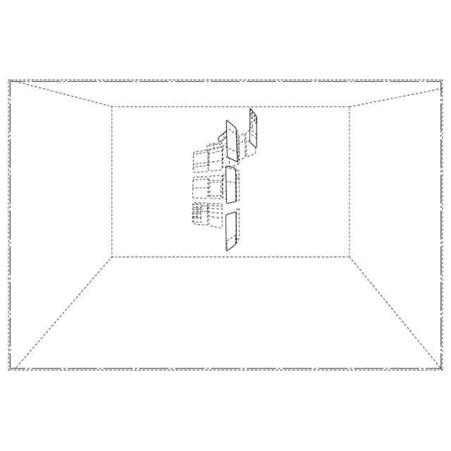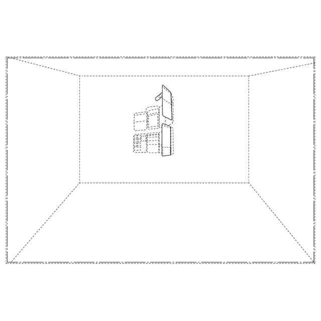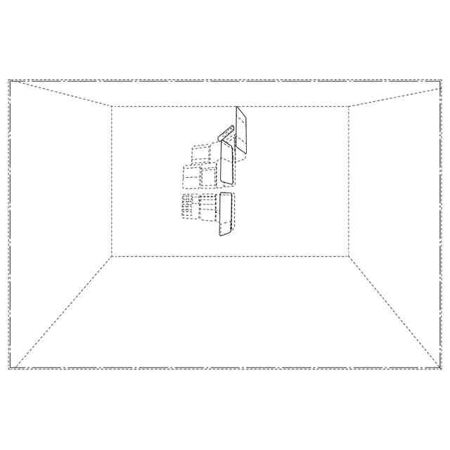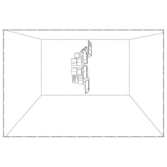 実線で表された部分が、意匠登録を受けようとする部分である。一点鎖線は、意匠登録を受けようとする部分とその他の部分との境界のみを示す線である。参考画像図において青色に着色された部分以外の部分は、3次元で表される。参考画像図において、青色で着色された部分は、例えば3次元仮想空間や3次元現実空間等を示す画像がユーザーの視野内の背景コンテンツとして表示される部分である。参考画像図において赤色で着色された部分はウェブサイト、写真やメディア情報等のコンテンツが表示される部分である。