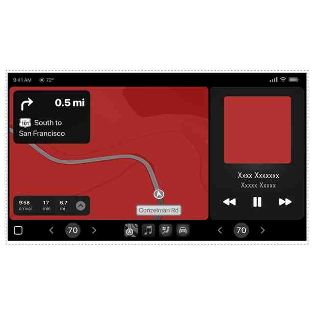 破線で表された部分以外の部分が、意匠登録を受けようとする部分である。参考画像図において赤色で着色された部分は、画像図において地図や画像等のコンテンツが表示される部分を示す。画像図及び参考画像図において、Xが並んだ文字列は、アーティスト名やタイトル等のコンテンツに関する情報を表すことができる。