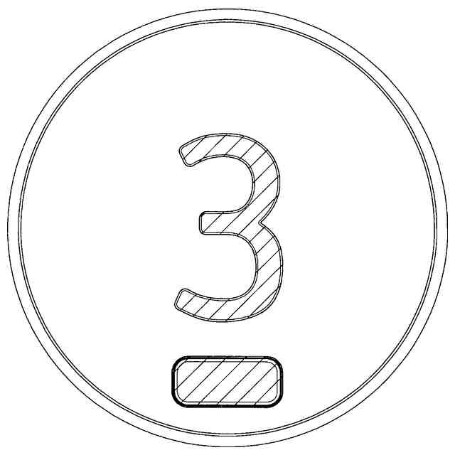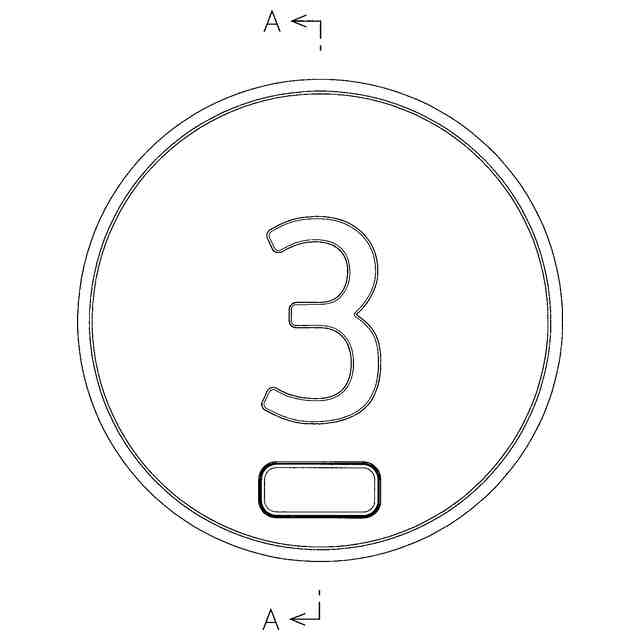 この意匠に係る物品は、エレベータかご又は乗場に設置されるエレベータのかご呼びボタン等に使用されるもので、本物品を押す又は指等をかざすと内蔵光源が点灯し、透光部を示す参考正面図中斜線を施した数字部分が光る。