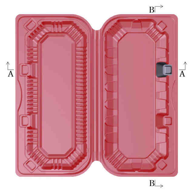 各図面の表面部全面に表された濃淡は、いずれも立体形状を特定するためのものである。部分意匠として意匠登録を受けようとする部分は、赤色で表された部分以外の部分である。B-B部分におけるA-A拡大断面図に表された青色は、断面形状のみを表すものである。