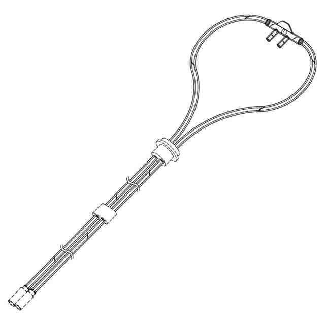 本意匠に係る鼻カニューレ(鼻管)は、水素及び酸素を発生させる機体に接続して使用する。使用者は、鼻腔に本物品を装着して、機体が生成する水素及び酸素を吸入することができる。本意匠は、長い2本の入口管、接続管および短い2本の出口管を備えている。入口管は、接続管を介して出口管と連通されている。接続管の管壁の外側の一側には、フィン部が設けられ、フィン部と出口管との夾角は、左側面図において、90度超180度未満を呈している。