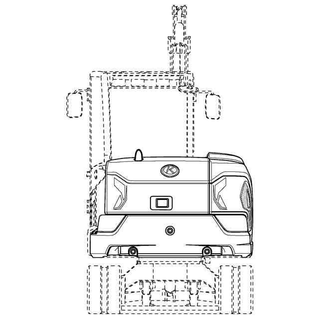 本物品は重量物であるため、底面図は省略する。実線で表した部分が意匠登録を受けようとする部分である。背面斜視図1、背面斜視図2、背面図、及び、右側面図に表れる網掛け部は、全面に複数の小孔が形成された網状のカバーである。同網掛け部に表れる実線で囲われた部分は凹部である。各図の実線部に表れる途切れた線は、立体表面の形状を表すための線である。