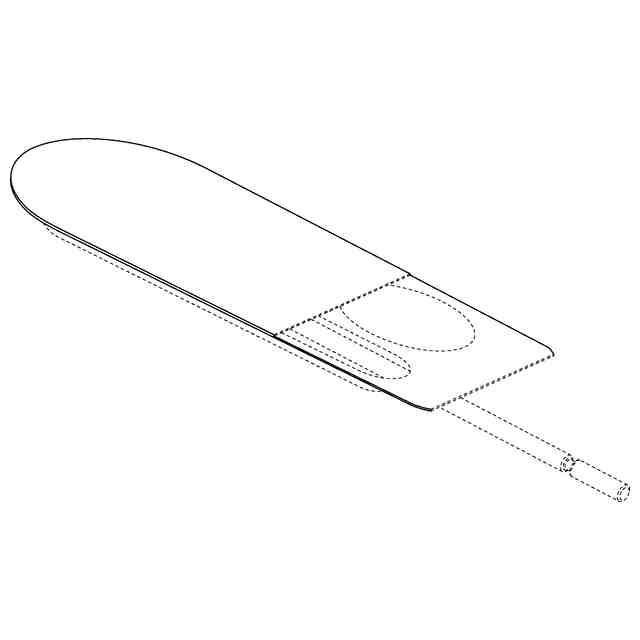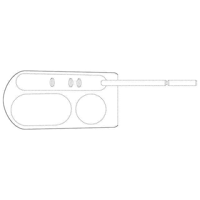 実線で表された周側面部分が意匠登録を受けようとする部分である。実線で表された部分における複数の平行状細線は立体表面の形状を特定するためのものである。正面図、背面図、右側面図及び左側面図は縦113mm×横150mmの枠内に収めるため左に90度回転して表した。
