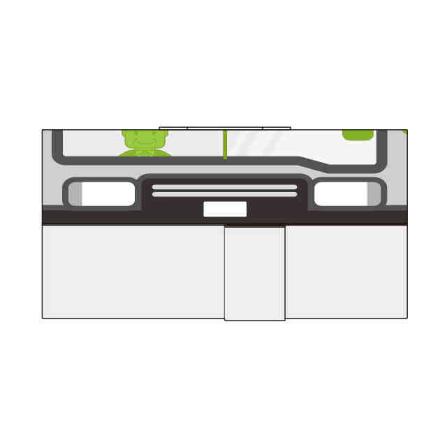 実線で表された部分が、部分意匠として意匠登録を受けようとする部分である。各図において、黄緑色で着色を施した部分以外の部分が、部分意匠として意匠登録を受けようとする部分である。図面上に表された明暗部は、明度差を表すものである。各図において、物品の表面に表された細線は、いずれも立体表面の形状を特定するためのものである。
