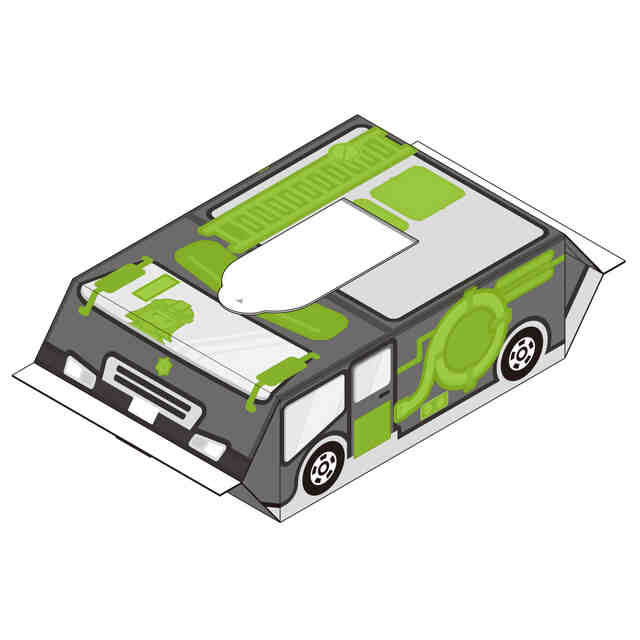 本物品は、主として、おしりふきを包装する包装用袋である。本物品は、平面部略中央に備えたフラップ部を開蓋して、おしりふき等を取り出すことができる。