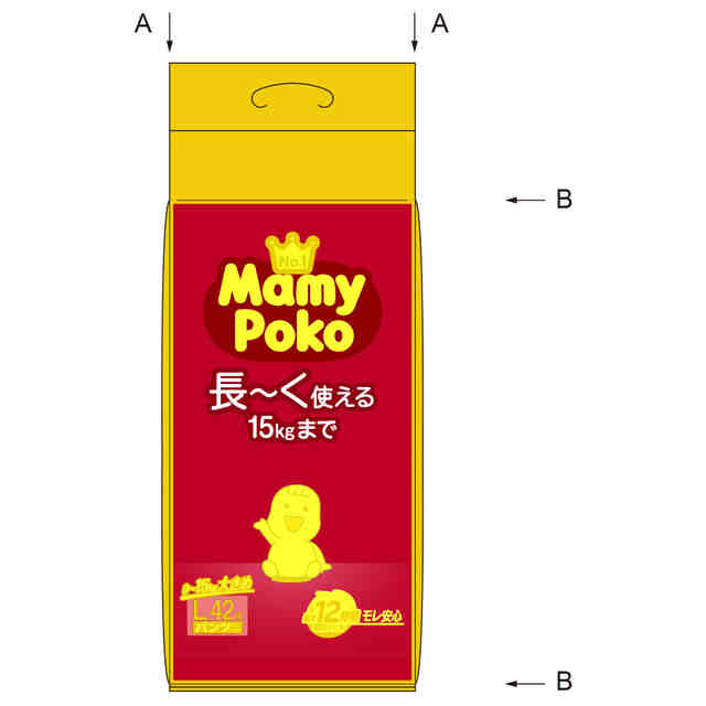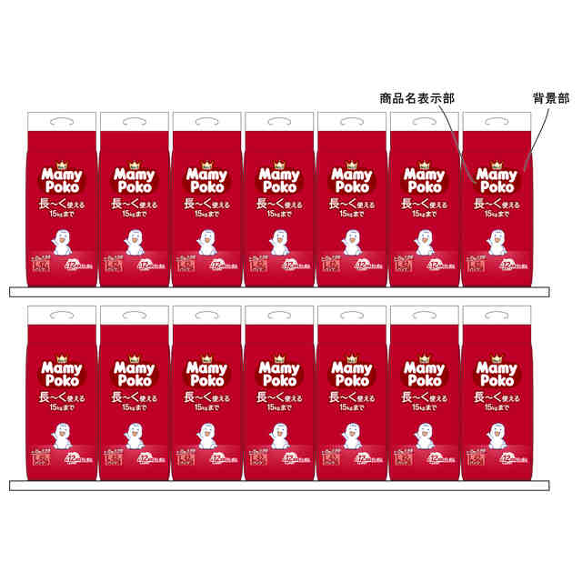 本物品は、主として、使い捨ておむつを包装するために用いられる包装用袋である。本物品は、「使用状態を示す参考図」に示すように、陳列した状態で一続きの壁のように見える視覚的効果を有する。