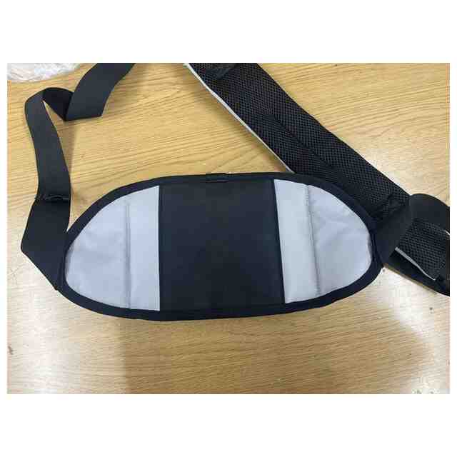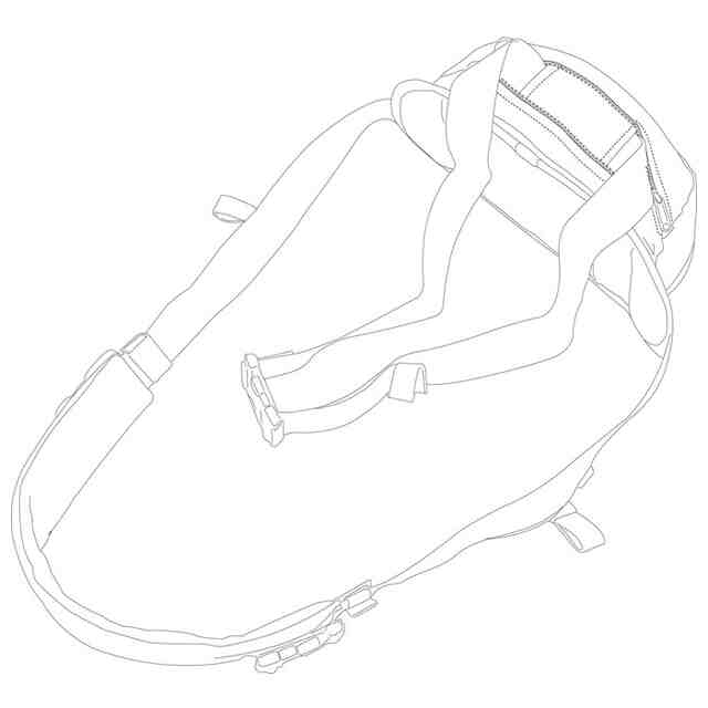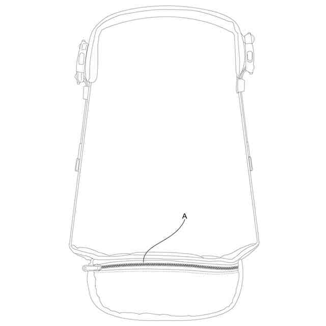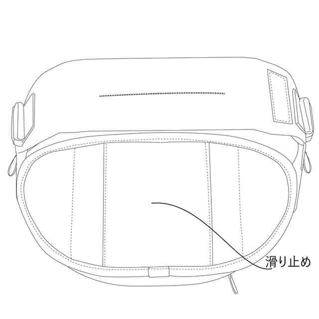 本物品は、ショルダーバッグと抱っこ紐の2つの機能を有するものである。本物品はショルダーバックとして使用することもできるし、ショルダーバックの背面を上方に向けると、参考背面図並びに「ショルダーバックの参考図2」に示すように滑り止めを施した座面となり、乳幼児を座らせ抱っこ紐として使用することもできる。本物品は、「ショルダーバックの参考図1」に示すように、角を丸めた、丸みを帯びた形状をしており、ショルダーバックとしては収納スペースに余裕が生まれ、柔軟にものを入れやすいとともに、本物品全体に柔らかい印象を与える。また、抱っこ紐として使用する際、参考平面図のAには乳幼児の背中にあてる通気性のよいメッシュ生地を収納したポケット部分があり、「乳幼児の背面を保持した状態を示す参考図」に示す通り、乳幼児の背面を保持することができる。また、参考底面図に示す通り、Bには乳幼児を抱っこする際に腰に回す腰紐を収納するポケット部分があり、「腰紐を使用した状態を示す参考図1及び参考図2」のように当該腰紐を使用することで、乳幼児を本物品の使用者に密着させて抱きかかえやすくなる。