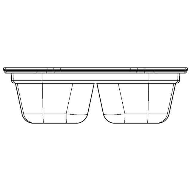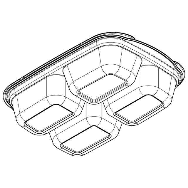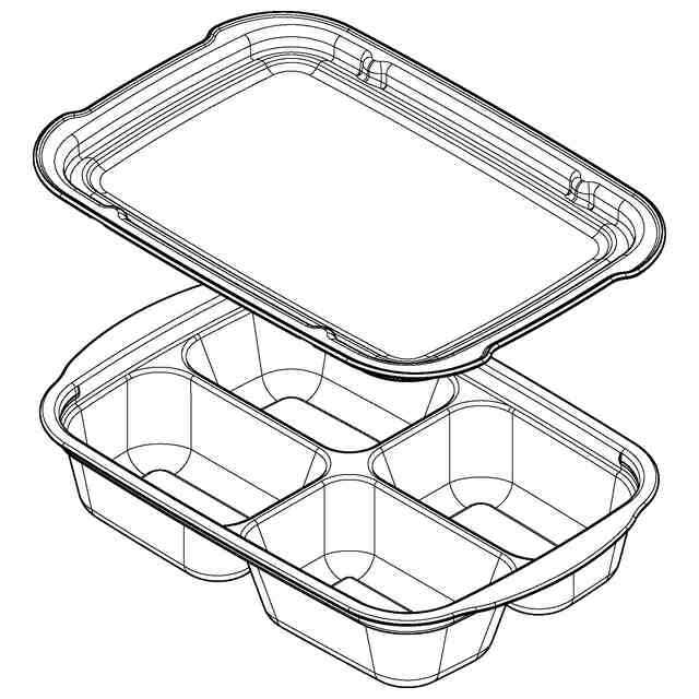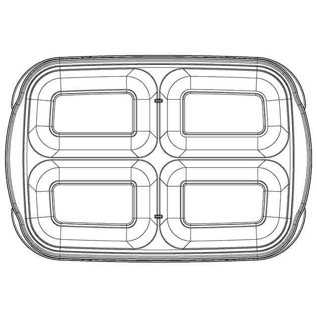 本願意匠に係る物品(以下「本物品」という。)は、加工済み又は調理済の食品などを保存する際に用いられる食品保存容器である。本物品は、上方に開口する開口部を有する平面視で略矩形状の容器本体と、この容器本体の開口部を閉塞する蓋体とを備えている。本物品の容器本体は、開口部の周縁より外方へ張り出す周縁部と、この周縁部の内側より一段低い位置を周方向へ延びる環状の段差部と、この段差部の内側の領域においてそれぞれ区画された4つの収容部とを備えている。本物品の4つの収容部は、容器本体の段差部の長手方向の中央を短手方向に連結する短手方向連結部と、容器本体の段差部の短手方向の中央を長手方向に連結する長手方向連結部とによってほぼ同じ大きさに区画されている。そして、本物品の4つの収容部は、容器本体の段差部及び各連結部の内側よりそれぞれ底部に近付くに従い次第に細くなる四角推台である略逆四角柱状に形成され、同じ大きさ及び同量の食品などの保存に供されるようにほぼ同じ大きさとなっている。一方、本物品の蓋体は、容器本体の周縁部に対し閉塞時に当接する環状の外側当接片と、この外側当接片の内側に設けられ、容器本体の段差部及び各連結部に対し閉塞時に当接した状態で容器本体の開口部を閉塞しつつ各収容部間での食品の流通を遮断する内側当接片とを備えている。また、本物品の容器本体の周縁部の長手方向両端部は、短手方向両端部を残して中央部を開口部側に凹ませた凹部をそれぞれ有している一方、蓋体の長手方向両端部は、短手方向両端部よりも中央部を容器本体の各凹部よりも外方へ円弧状に膨出させた膨出部をそれぞれ有していて、蓋体を開放する際に容器本体の各凹部を介して各膨出部を下方から直に持ち上げて蓋体の開放がスムーズに行えるようにしている。