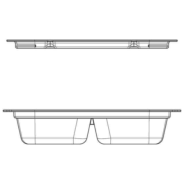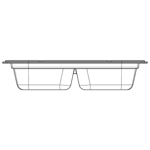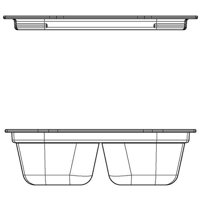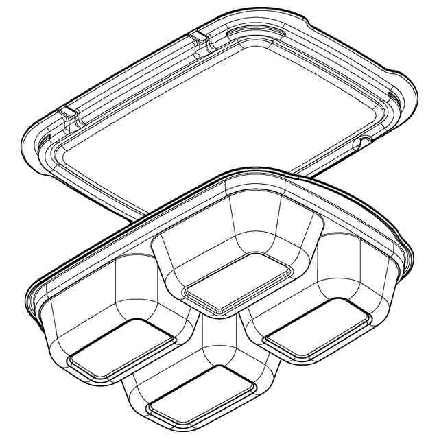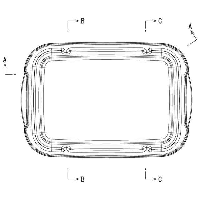 各図面に表されている細線は、平面と曲面及び曲面同士の境界を示し、立体表面の形状を特定するためのものである。本物品は、ポリプロピレンなどの合成樹脂により成形され、蓋体を含む容器本体の長手方向の寸法が約208mmに、容器本体を含む蓋体の短手方向の寸法が約140mmに、蓋体を含む容器本体の高さ方向の寸法が約42mmにそれぞれ設定されている。参考斜視図1及び分解した状態を示す参考斜視図1は、それぞれ斜め上方から見ている。また、参考斜視図2及び分解した状態を示す参考斜視図2は、それぞれ斜め下方から見ている。