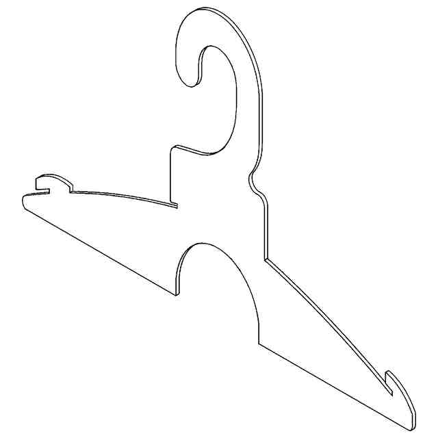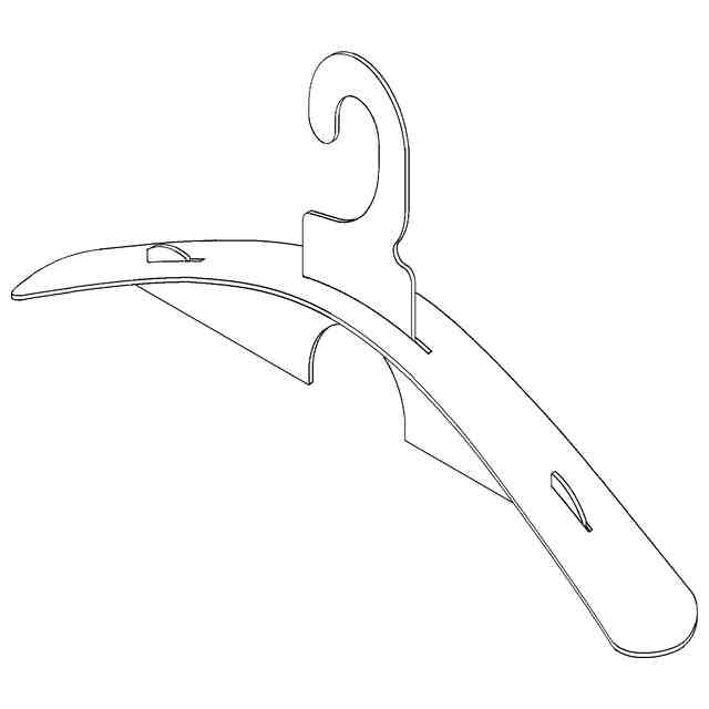 本物品は、互いに別パーツのハンガー部と肩掛けからなる紙製のハンガーである。ハンガー部の中央のフックを肩掛けの中央のスリットに挿し込み、かつハンガー部の両側の突片を肩掛けの両側のスリットに挿し込んでスライドさせることで、本物品が組み立てられる。