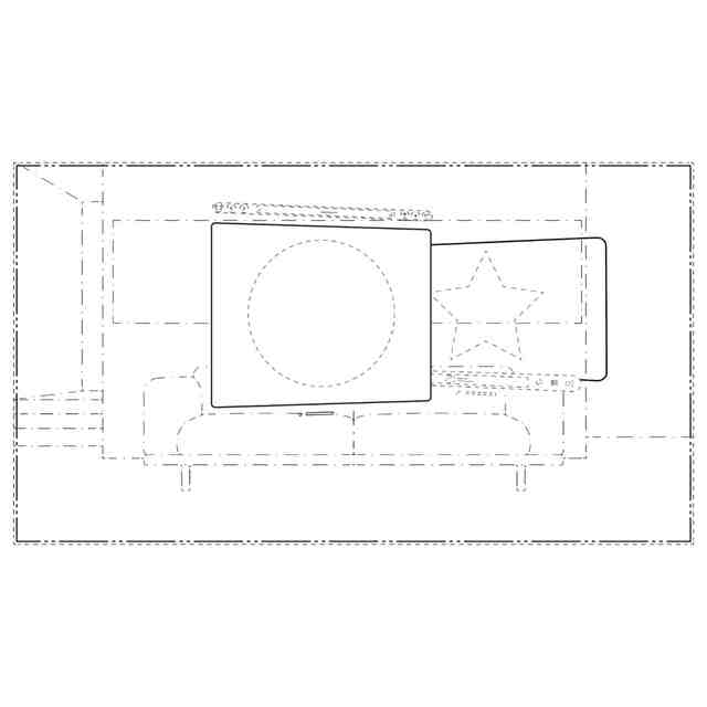 二点鎖線は、意匠登録を受けようとする部分とその他の部分との境界のみを示す線であり、実線で表された部分が、意匠登録を受けようとする部分である。背景コンテンツ部を示す参考画像図1及び背景コンテンツ部を示す参考画像図2において赤色で着色された部分は、例えば3次元仮想空間や3次元現実空間等を示す画像等がユーザーの視野内の背景コンテンツとして表示される部分である。参考画像図1及び参考画像図2において青色で着色された部分は、半透明であるかのように背後の背景コンテンツが透過して表れる。