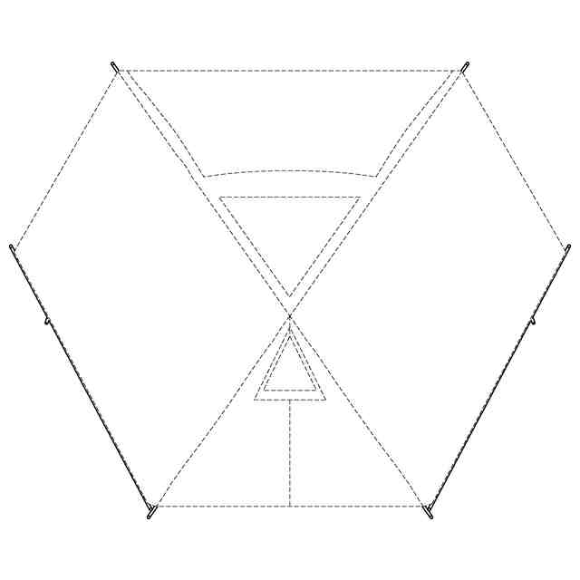 本物品は、キャンプ等に使用されるテントであり、平面視六角形状とすることで、例えば簡易ベッド等を、テントの内壁に沿って設置することができ、テント内のスペースを有効活用できるものである。