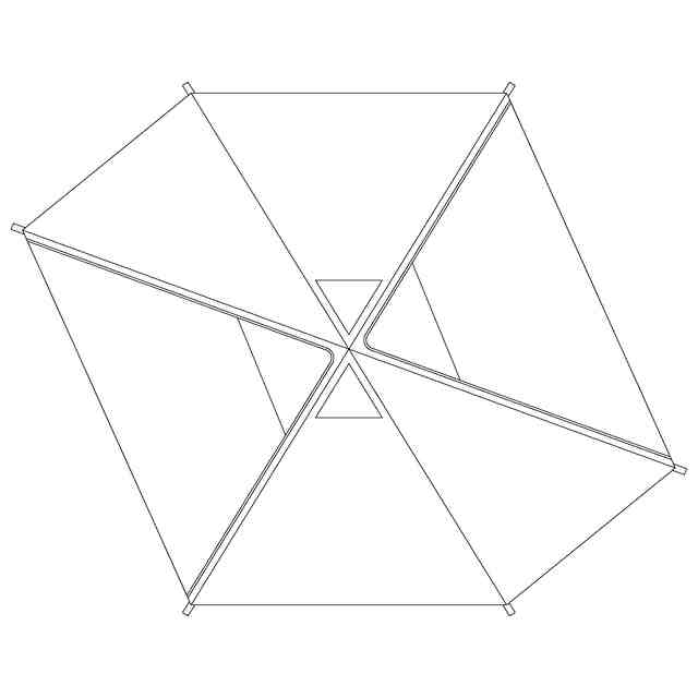 本物品は、平面視六角形状をなし、その二辺を大きく取って出入口とすることで、コンパクトでありながら、居住性が高く、開放感に優れたテントである。