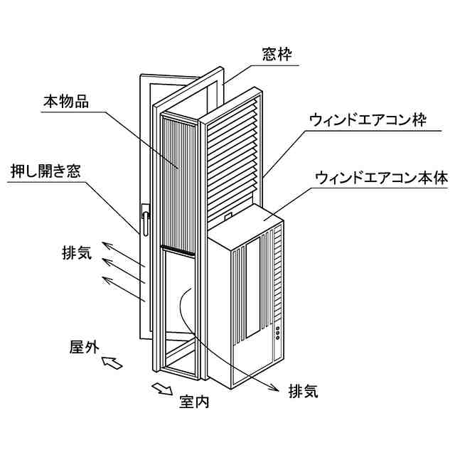 本意匠に係る物品は、使用状態を示す参考図に示すとおり、ウインドエアコンを押し開き窓に設置するための窓パネルである。参考斜視図2に示すとおり、下方に位置する窓をスライド移動させて開口させることで、排気を行うことができる。