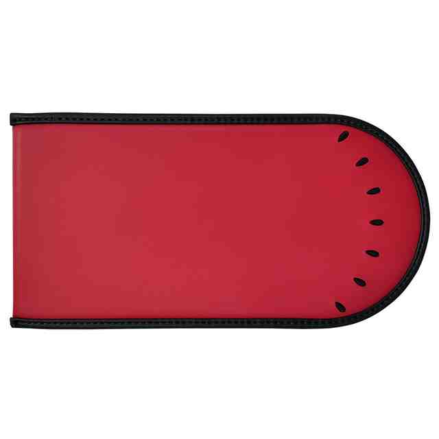 本意匠は、ランドセルまたはランドセル型のバッグに設けられた収納部の一方の側面上端部に基端部が取り付けられる平板状のかぶせ蓋であり、収納部の一方の側面上端部から上方に湾曲可能に延設され、収納部の開口部と他方の側面を覆って先端部が収納部下部に係止されるものである。