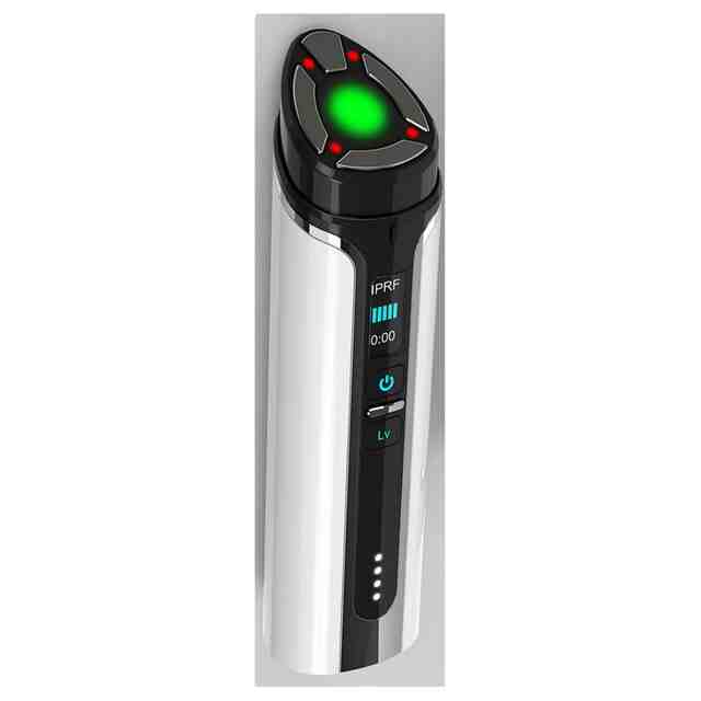 1.本意匠に係る物品の外観の材質は、金属および合成樹脂製である。 2.参考図1の使用状態図から分かるように、本願意匠の物品の蓋を開けると、ヘッドの上部にはマッサージ用の複数の電極が搭載されている。また、ヘッド上部の中央、および電極の間には複数の発光素子が搭載されており、作動時には発光によって表示され、皮膚に照射される。さらに、本願意匠の物品は本体の正面にも複数の発光素子が搭載されており、作動時に動作状態を表示することができる。