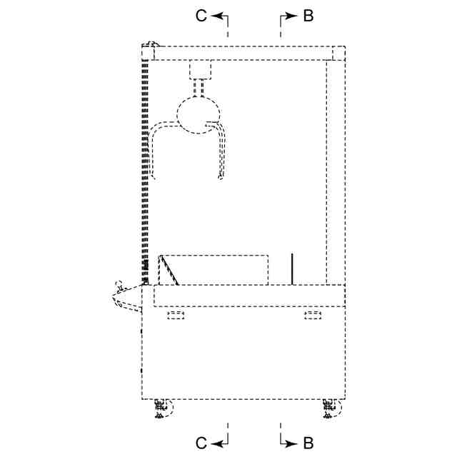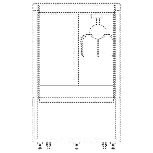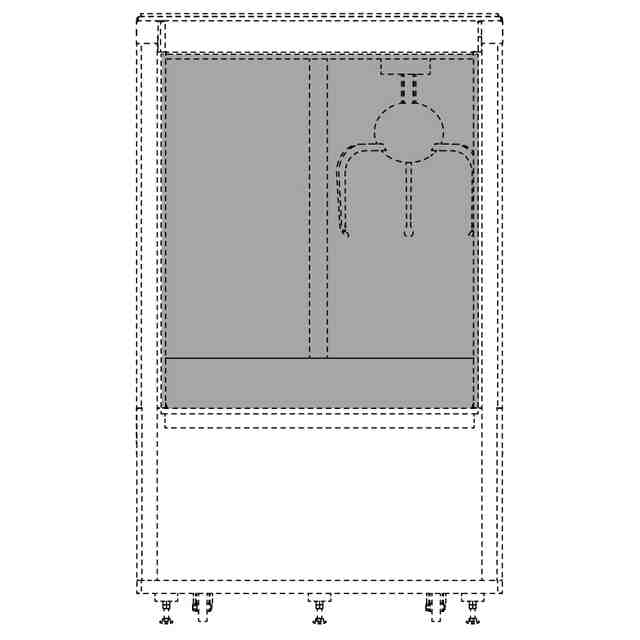 実線で表された部分が意匠登録を受けようとする部分である。「A-A線断面図」、「B-B線断面図」、「C-C線断面図」、「意匠登録を受けようとする部分近傍の拡大斜視図1」、「意匠登録を受けようとする部分近傍の拡大斜視図2」を含め、意匠登録を受けようとする部分を特定している。「透明部分を表した参考斜視図」、「透明部分を表した参考背面図」において、灰色で示す部分は透明である。