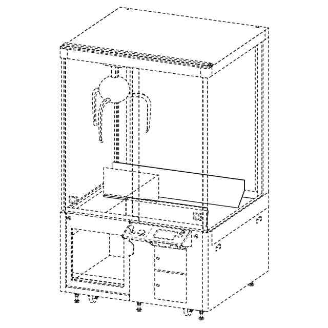 本物品は、本体上部に透明な四面を持つクレーンゲーム機である。意匠登録を受けようとする部分は、ゲーム機内のフィールド面、フィールドを仕切るパーティション及びフィールド前方に配置され景品落とし口の長さに合わせて伸縮可能なバンクである。パーティションは景品エリアと装飾エリアを仕切るために、バンクはゲーム中に移動した景品をクレーンアームが届く位置にとどめるために用いられる。