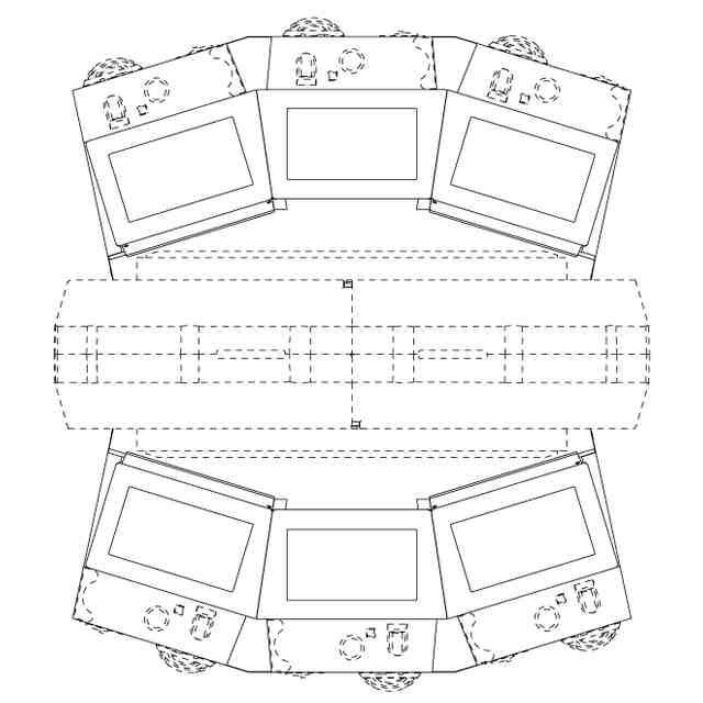 本物品は、各ユーザーが操作するサテライトを扇状に並べたゲーム機である。