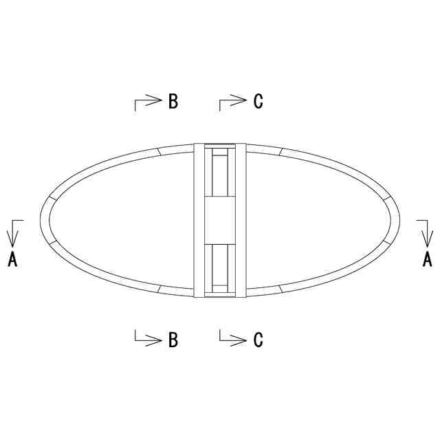 背面図は正面図と、左側面図は右側面図と、底面図は平面図と同一に表れるため省略する。