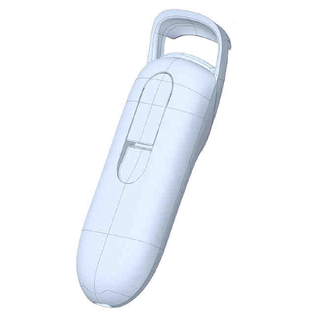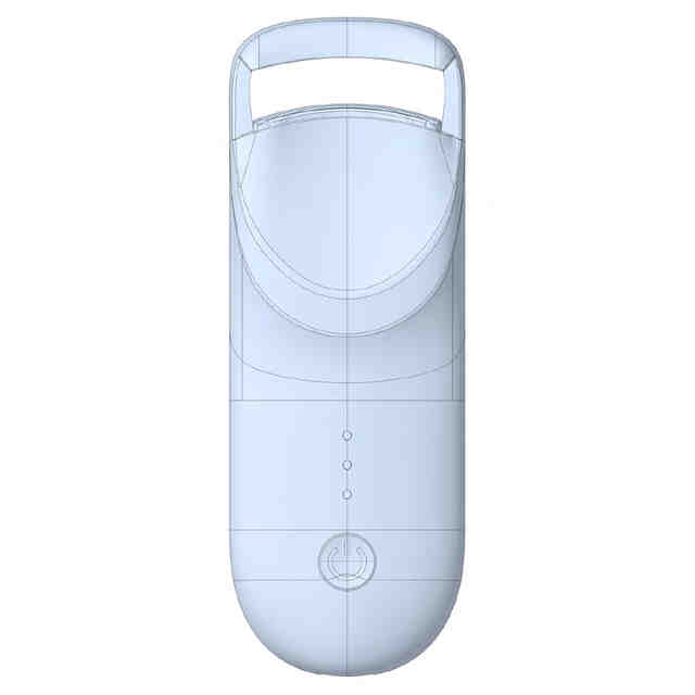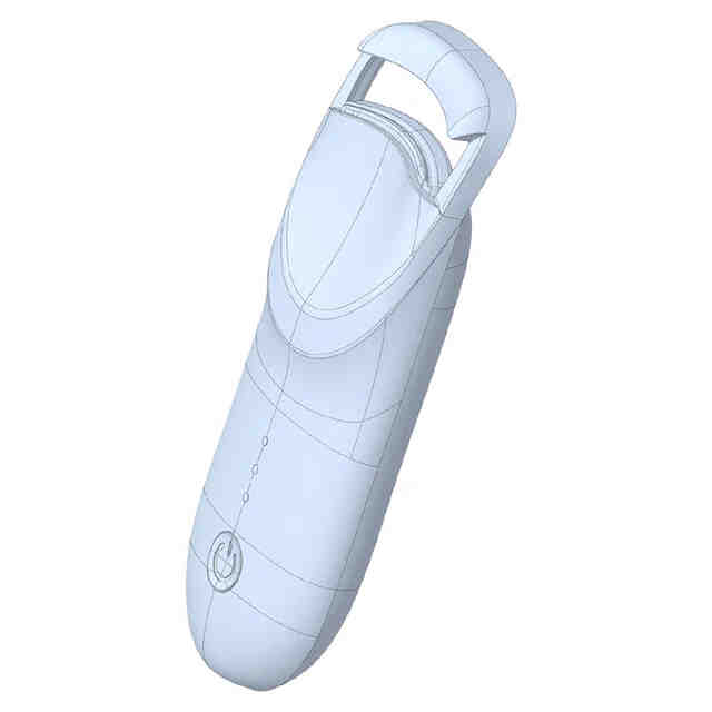 本物品は、まつ毛を加熱しながらカールするまつ毛カーラーである。背面に設けられたレバーを操作することでまつ毛を挟む下プレートが本体側から上プレートに向けて移動する。
